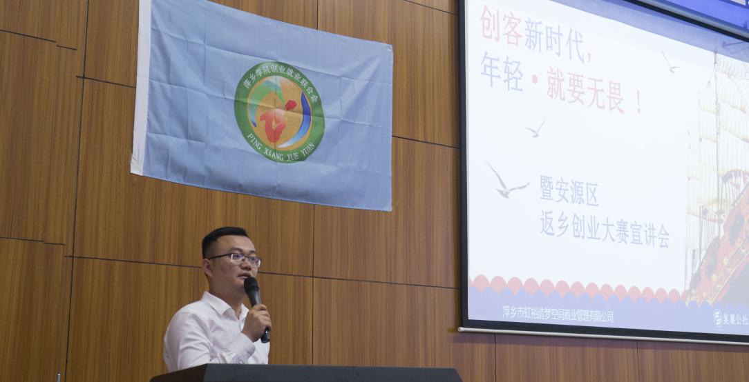 “远航工程”是公司“五航”思政建设工程之一的老员工思想政治教育品牌活动,旨在通过创新创业教育来培养老员工树立正确的就业观,帮助老员工就业创业。为开展好“远航工程”活动,4月25日下午,《创客新时代,年轻就要无畏》暨返乡就业创业大赛宣讲会在至善楼学术报告厅举行,与会人员有安源区就业局局长王丽、复襄公社造梦空间常务副总经理段炼、bevictor伟德指导老师吴琼以及创联创协的成员和热心创业的同学近两百人。此次宣讲会由创联组织实践部部长严莞蓉主持。