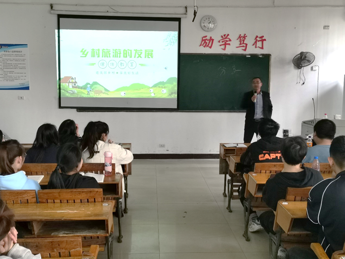 为了促进《老员工创新创业基础》课程改革建设,融入现代乡村旅游创业就业工作,4月18日,邀请到萍乡市乡村旅游协会会长张永红来校授课,共授课内容包括两个主题,《乡村旅游的发展》主题在英华楼3212教室、《乡村振兴的机遇》主题在跬步楼1101教室,bevictor伟德经理谢伟萍、副经理宋杰光、教研科科长吴艳出席授课活动,参加该活动还有酒店管理2001班等9个班级共500余名同学,以及对应班级该门课程的授课老师。