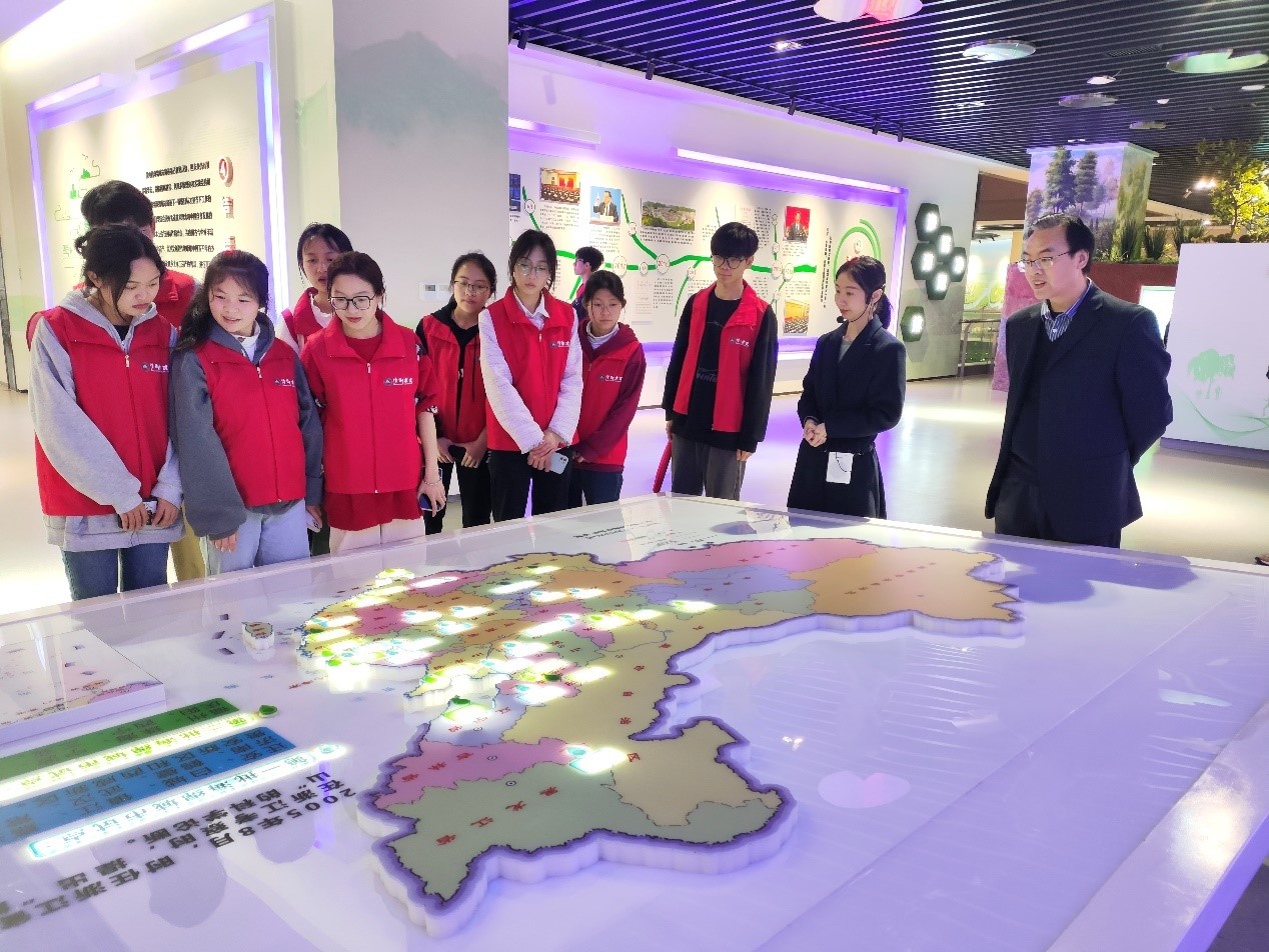 展览馆讲解员叶嘉向团队介绍了萍乡从能源枯竭型城市应势转变为海绵城市,同时从渗、排、滞、净、蓄、用五个方面介绍了海绵城市的总体功能。通过讲述海绵城市建设城市内涝前后情况对比,可以看到水质恶化趋势得到了扭转,并重构城市人水和谐关系。