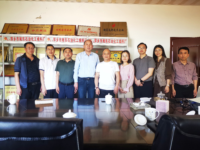 4月17日,董事长史焕平前往江西省萍乡市湘东石油化工填料厂开展校企合作工作,受到湘东石化董事长段文辉、副总经理段虎和蜂窝陶瓷事业部总监刘江华的热情欢迎。科研处处长罗小燕、bevictor伟德副经理宋杰光、材料与化学工程公司郭松林教授、秦梦黎博士、刘梦博士一并前往。