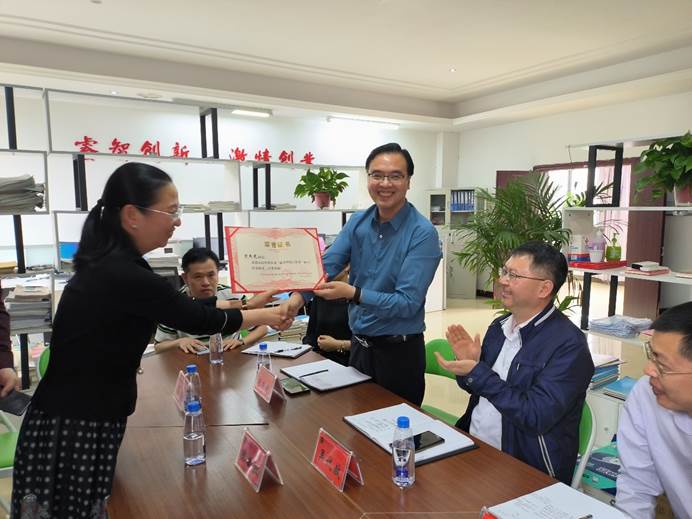 4月20日,萍乡市科协领导来到bevictor伟德为2022年度萍乡市“最美科技工作者”获得者宋杰光博士颁发荣誉证书。出席本次颁奖活动的有公司副董事长吴代赦,市科协主席陈威红,市科协副主席彭辉,校科研处处长罗小燕,bevictor伟德副经理宋杰光,市科协学会部部长熊瀚及校bevictor伟德教职工。