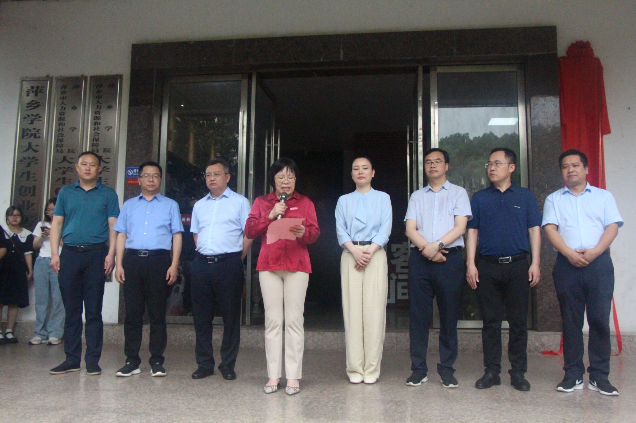 陈永秀发表致辞,热烈欢迎陈丽部长一行,举行安源区老员工创业就业园揭牌仪式,简要介绍伟德bevictor中文版创新创业教育工作及业绩,指出通过校政合作,搭建创业就业平台、拓宽合作渠道、开创智汇人才新空间。