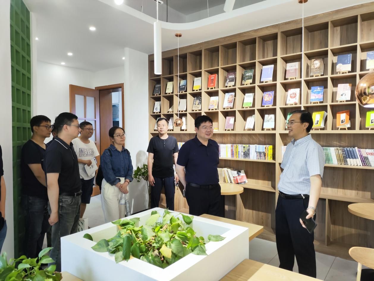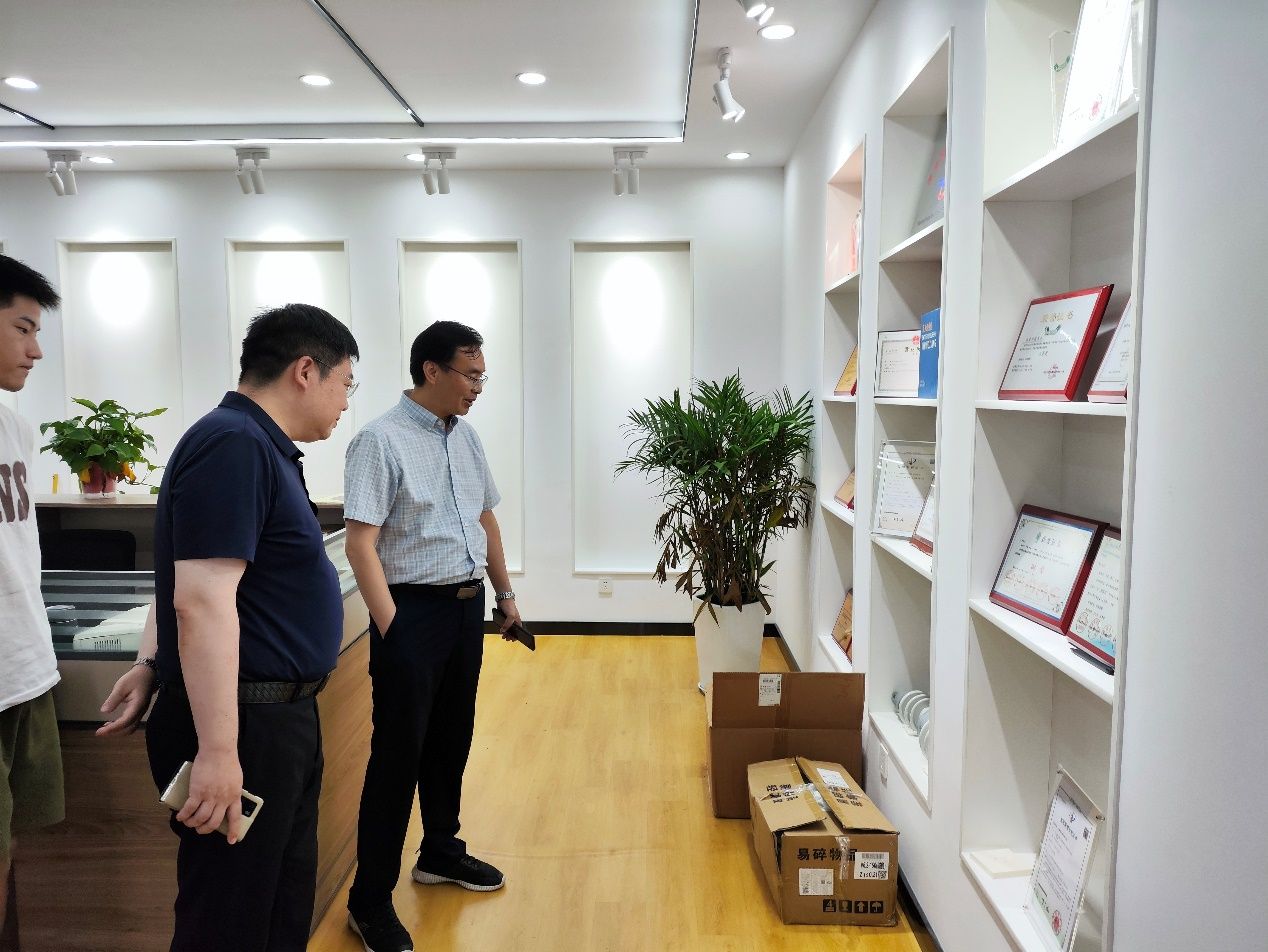 宋杰光引到来宾参观了公司老员工创新创业孵化基地项目工作室,介绍了公司老员工创业孵化基地建设、优秀创业项目培育发展历程及项目孵化工作成果等内容。在创业展示区,来访的领导们对公司员工制作并展示的文创产品产生了浓厚的兴趣,并对相关产品的功能与实施成效展开了交流。