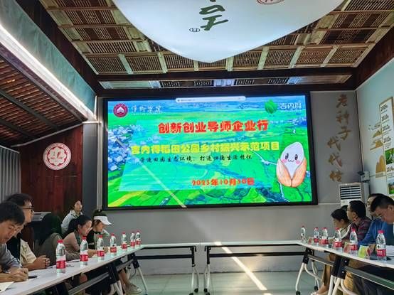 导师团首先对吉内得稻田公园乡村振兴示范项目进行调研;其次,郭伟向蒋鹏程颁发了创新创业导师聘书;最后,创新创业导师开展创新、创业和就业教育面向未来教研座谈会。