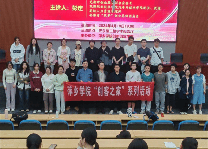 4月18日在天泉楼三楼学术报告厅举行伟德bevictor中文版第九期创新创业大讲堂。本次大讲堂邀请到芜湖市创业服务联合会会长、芜湖职业技术公司汽车与航空公司经理彭定教授作为主讲嘉宾,bevictor伟德副经理宋杰光主持,本次大讲堂有创业就业联合会成员、创客之家成员、大创项目成员、孵化项目成员及各二级公司部分同学共300余人参加。