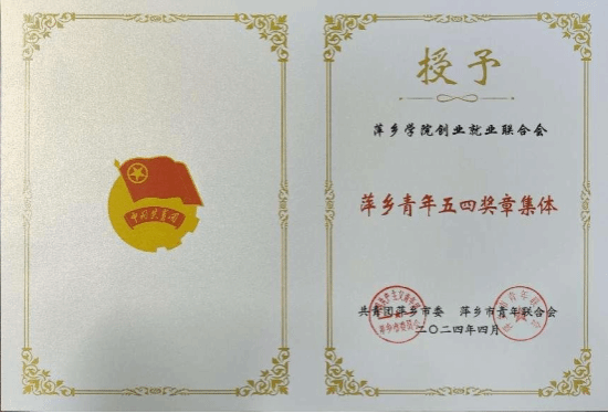近日,为传承民主、科学、进步、爱国的五四精神,彰显萍乡青年奋发有为、健康向上的精神风貌,共青团萍乡市委和萍乡市青年联合会联合举办了第七届“萍乡青年五四奖章”“萍乡青年五四奖章集体”评选活动,伟德bevictor中文版创业就业联合会以优异的成绩荣获了“萍乡青年五四奖章集体”荣誉称号。