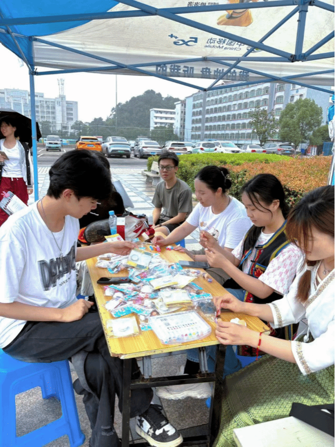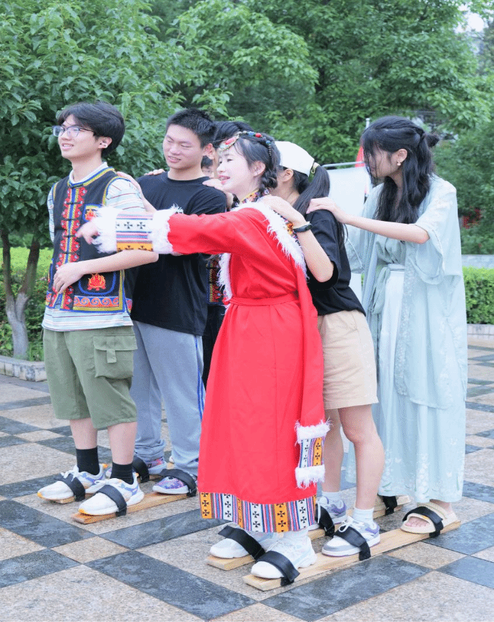 活动设置了民俗文化展览区和创意手工展览区。项目成员穿戴各民族服饰,并就自身服饰进行民族文化科普,同时进行创意绘画和手工剪纸。此外活动还开展了民俗体验项目,如竹竿舞、投沙包、板鞋赛、葫芦丝。