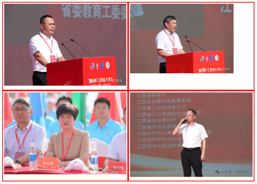 兴国县县委书记李贱贵在出征仪式上致欢迎辞。随后来至南昌大学等不同高校的五位同学分别分享了项目的发展经历。在场的师生听完分享后无不对他们的成果表示赞叹,并表示自己从中受益匪浅,会在将来的创新创业途中向他们学习。