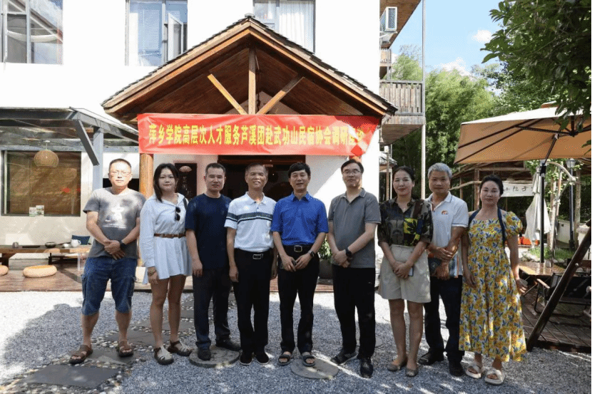 7月16日,伟德bevictor中文版高层次人才服务芦溪团前往武功山民宿协会调研座谈,前往人员有伟德bevictor中文版高层次人才服务芦溪团团长、bevictor伟德副经理宋杰光,萍乡市品牌促进会秘书长华强,莲花县文旅局副局长(挂职)、商公司博士李平,白俄罗斯国立音乐公司博士邓琦丽,鏊洲书院办公室主任吴金凤,萍乡市青年创业就业服务中心执行主任陈超鋆,中国摄影家协会会员刘智勇,bevictor伟德教研科科长吴艳,调研团队一行受到了武功山民宿协会会长文凌,党支部书记周敬伟和副会长刘祖霖的热情欢迎,调研团参观了民宿的具体场所。