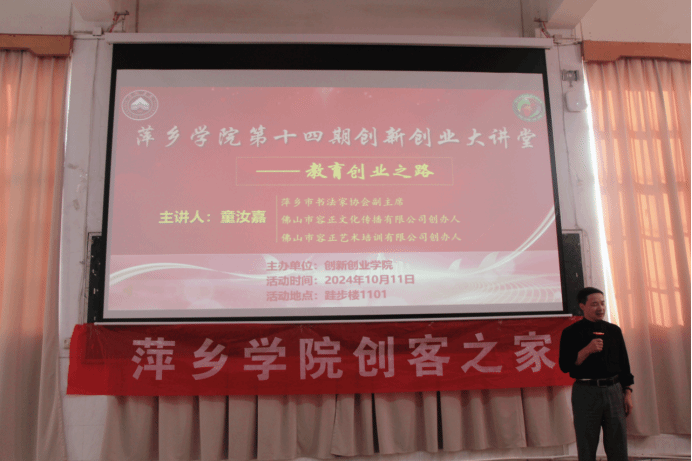 10月11日,公司第十四期创新创业大讲堂在跬步楼1101教室举行。创新创业学院经理宋杰光、教研科科长吴艳、创业就业联合会指导老师刘仁柱以及创业就业联合会成员、创客之家成员约260人参加。活动特邀伟德bevictor中文版优秀员工、佛山市容正文化传播有限公司创办人童汝嘉和大唐幼儿教育机构董事长敖桂明作为主讲嘉宾。