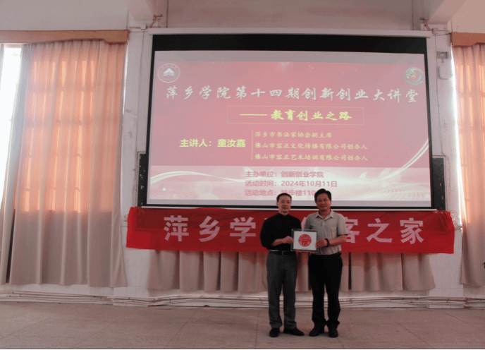 活动伊始,宋杰光为童汝嘉颁发创新创业导师聘书,敖桂明为童汝嘉赠送了公司大创项目作品《萍乡剪纸》。