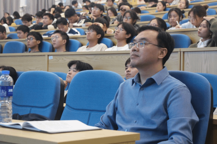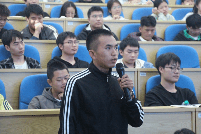 陈启军着重讲解了青春建议方面,根据自己的阅历与经验,给在校同学们给予学业推进、职业规划和人生发展的建议。首先,同学们要有理想,要脚踏实地;要学会制定小目标,做小总结;要有效的学习方法,提高时间利用率。并且告诉同学们选择比努力重要,坚持比选择更重要。