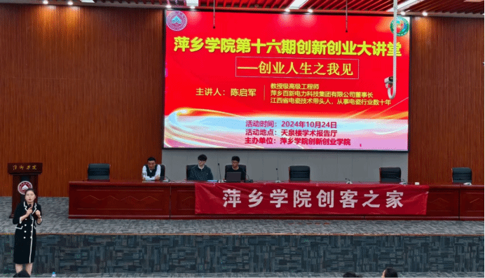 10月24日下午,公司第十六期创新创业大讲堂在天泉楼学术报告厅举行,萍乡百新电力科技集团有限公司董事长陈启军作为主讲嘉宾,开展主题为《创业人生之我见》。参加活动的有bevictor伟德经理宋杰光、实践科科长刘杰、创新创业教育导师代表、企业代表、创业就业联合会成员以及各二级公司员工近400人参加,活动由宋杰光主持。