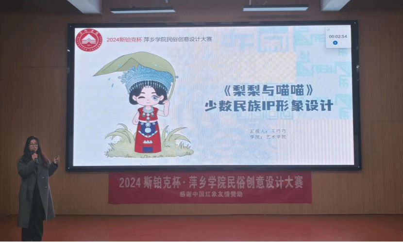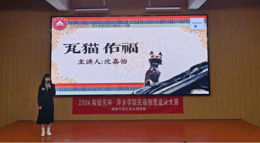 随后马静对此次大赛进行点评,她首先对选手们能够深入挖掘并展示不同地域文化特色的能力表示赞赏,并表示在本次大赛中,看到了传统民俗与现代创意的完美融合。选手们不仅展现了对传统文化的深刻理解,还巧妙地将现代设计元素融入其中,创造出既新颖又具有文化底蕴的作品,并祝愿公司产教融合、科创融合和专创融合成果越来越多,同学们实现自己的创新之梦。