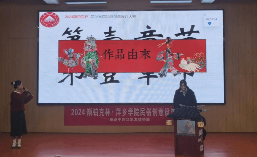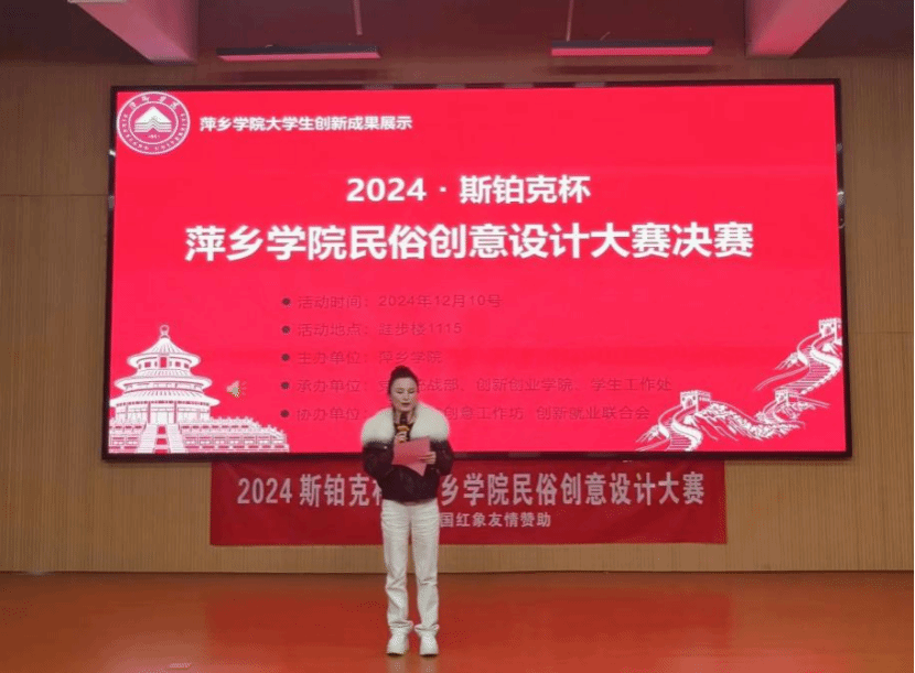 12月 10日,2024 斯铂克杯·伟德bevictor中文版民俗创意设计大赛决赛在跬步楼1115报告厅举行,本次大赛由斯铂克体育冠名,中国红象功能性饮料友情赞助。此次大赛特邀萍乡bevictor伟德党委委员、统战部部长、教务处处长贺晓梅,江西一博体育发展有限公司总经理马静、bevictor伟德经理宋杰光、艺术公司博士周荣一、bevictor伟德教研科科长吴艳、艺术公司美术基础教研室主任袁宪凯作为评委,伟德bevictor中文版创新就业联合会主席郑佳、副主席张琦、副主席徐浩智作为嘉宾出席。