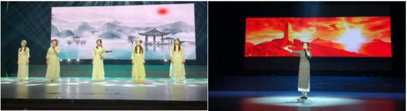 第二篇章:山河锦绣,诗意流淌。山河盛景诗意漾,墨香幽处韵悠扬,《美哉 诗经》、《我用残损的手掌》、《赞美》、《再别康桥》,萍乡市瀚洋语言艺术中心表演的《逃出大英博物馆》,以独特的视角和深情的演绎,重现了文物们的思乡之情与归家之盼,唤起了人们对历史的追忆和对文明瑰宝归家的决心。