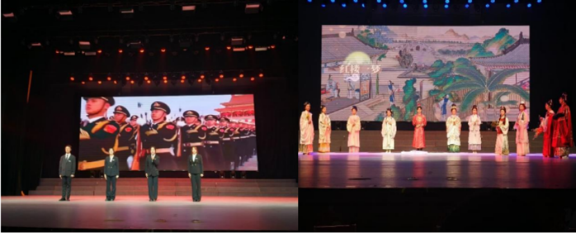 第一篇章:往昔风华,岁月长歌。开场舞《小城谣》的翩跹韵律拉开了晚会的序幕,《红铁》、《百年沧桑》、《觉醒年代》、《何以华夏 何以中国》和表演节目《兰亭序》,以别样的形式带我们领略华夏文明的雅韵风流。