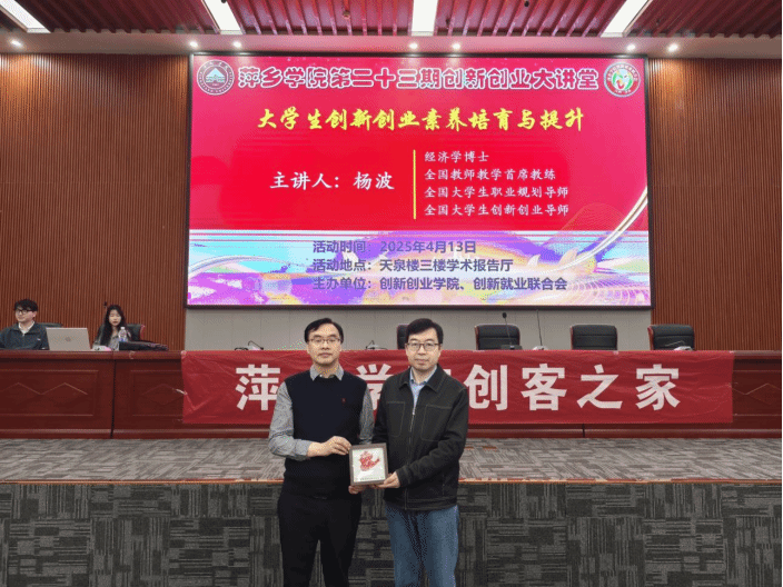 随后,宋杰光为主讲嘉宾杨波颁发伟德bevictor中文版创新创业导师聘书,赠送了大创项目作品《萍乡剪纸》。