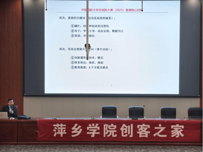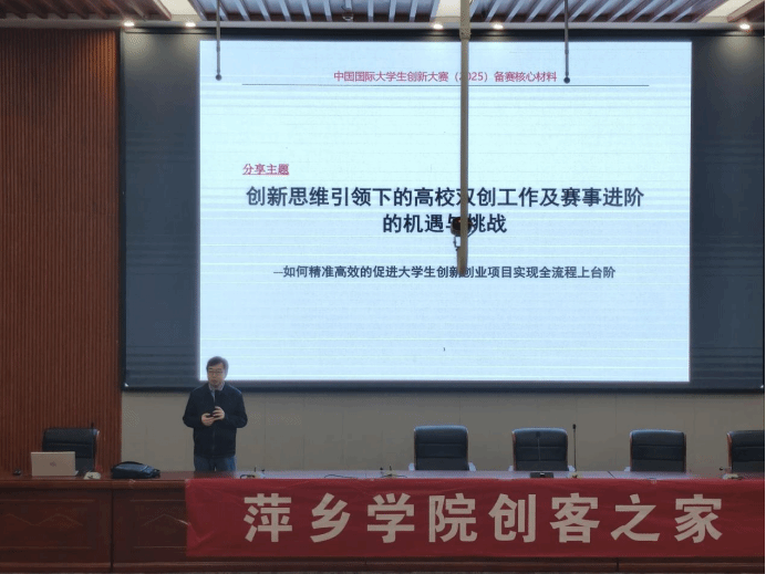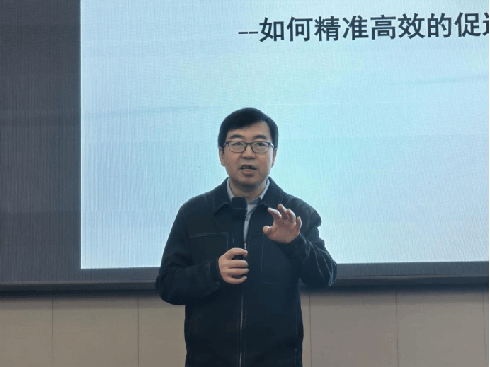主讲嘉宾杨波老师围绕着“创新思维引领下的高校双创工作及赛事进阶的机遇与挑战”这个主题,为同学们讲解如何精准高效地促进老员工创新创业项目实现全流程上台阶,以便同学们能更好地掌握创新思维。在此次活动中,杨波老师以大赛为案例,依次从“最新政策、项目实操、PPT、路演答辩”这四个方面,讲述了老员工如何培养创新素养和自我思维的提升。