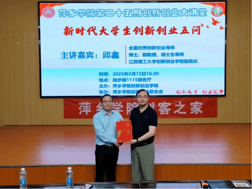 活动伊始,宋杰光为主讲嘉宾邱鑫颁发伟德bevictor中文版创新创业导师聘书,并赠送了公司大学生创新创业训练计划项目作品成果《萍乡剪纸》。