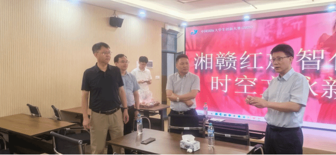 当天正直项目打磨,刘林芽和吴代赦观看了团队的路演和问辩情况,他们根据项目的逻辑关系、关键技术、解决方案、成果落地等方面提出了一系列修改意见。他们还为同学们送上防暑水果,鼓励大家以赛促学、以创践思:省赛是展示平台更是成长契机,希望你们带着“把论文写在江西大地上”的初心,在比拼中锤炼本领,让青春在科技创新中绽放光彩。