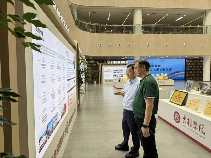 在活动期间,余何林带领参观了校园布局和校园环境,详细介绍了吉利公司的创新创业教育成果、创客空间和公司实践工作,朱利介绍了双创公司概况、产教融合情况、大赛组织情况,以达到提升员工创新、创业和创造能力,激发创新思维和锻炼员工的综合应用能力。