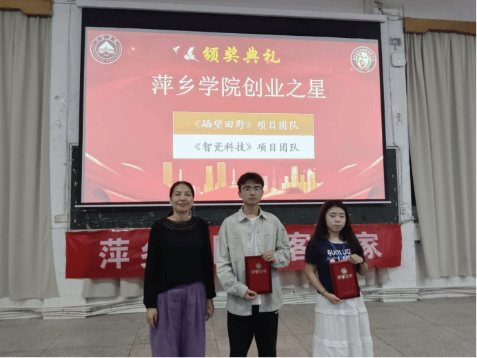 刘仁柱为2025年结题的优秀大创项目颁发荣誉证书,吴艳为2025年创业之星颁发荣誉证书,热烈祝贺项目团队取得的佳绩。