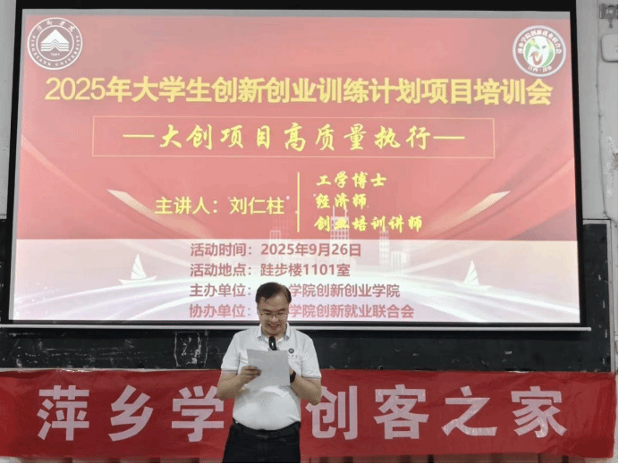 刘仁柱老师结合往年优秀项目案例,就项目合同签订、项目实施要求、经费预算与费用报销及结题要求等关键环节进行了逐一剖析。他特别指出,要聚焦2025年大创项目的规范化管理,为同学们带来了极具实用价值的指导,为后续项目的顺利开展奠定了坚实的实操基础。