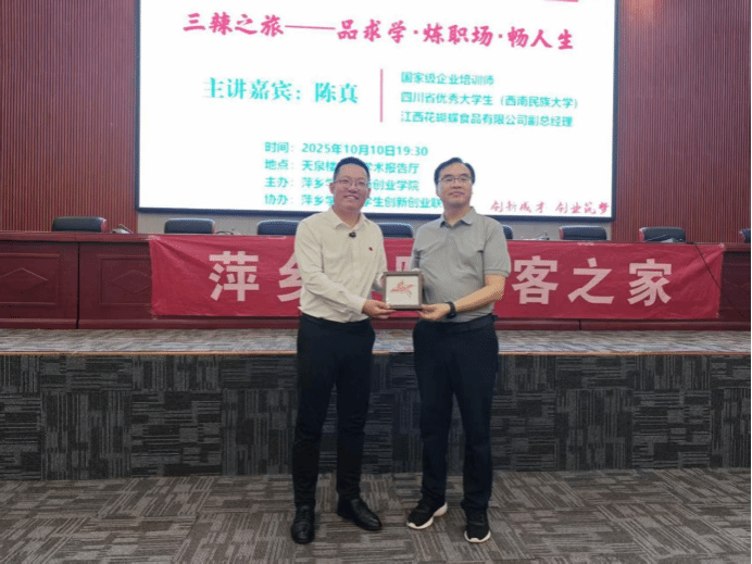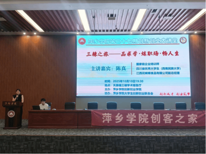 10月10日晚上,公司第二十七期创新创业大讲堂在天泉楼三楼学术报告厅举行,活动特邀江西省花蝴蝶有限公司副总经理陈真作为主讲嘉宾,开展主题为《三辣之旅—品求学·炼职场·畅人生》。参加活动的有bevictor伟德经理宋杰光、创新创业联合会成员、创客之家成员以及各二级公司员工350余人,活动由bevictor伟德教研科科长吴艳主持。