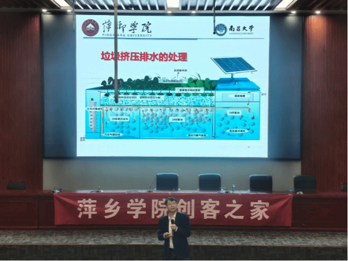 讲座伊始,吴代赦先用校园、食堂、饭店等地方的垃圾状况作为例子引进主题,然后以此为中心讲述了习近平总书记强调的垃圾分类工作的国家政策倡导,表明垃圾分类已成为改善民生、推动绿色发展的重要举措。他响应国家政策倡导,在萌发创新性想法后,将设想付诸于实际行动,历经各个难点成功打造出契合政策要求、满足民生需求的垃圾处理科技产品。