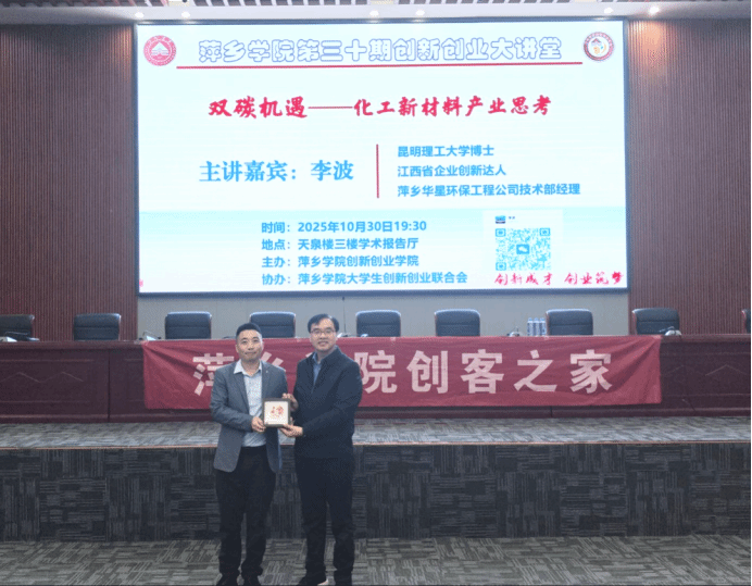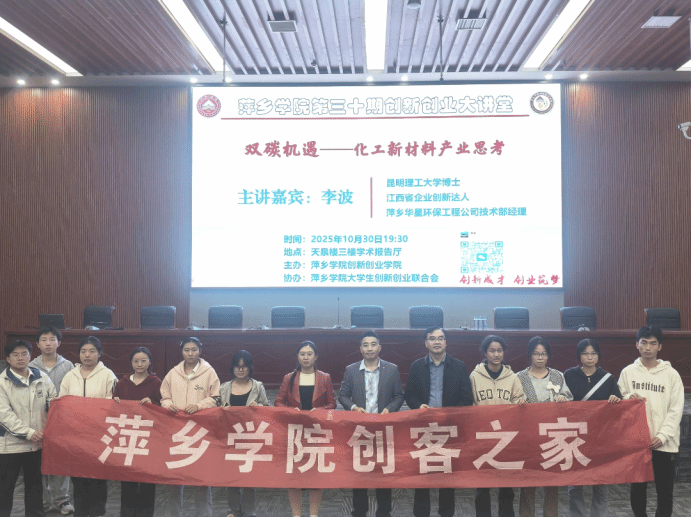 10月30日晚上,公司第三十期创新创业大讲堂在天泉楼三楼学术报告厅举行,活动主讲嘉宾邀请到昆明理工大学博士、萍乡市华星环保工程技术有限公司技术研发部经理李波,开展主题为《双碳机遇——化工新材料产业思考》。参加活动的有材料与化学工程公司博士杨丽、教研科科长吴艳、创新创业联合会成员、创客之家成员以及各二级公司员工360余人,活动由bevictor伟德经理宋杰光主持。