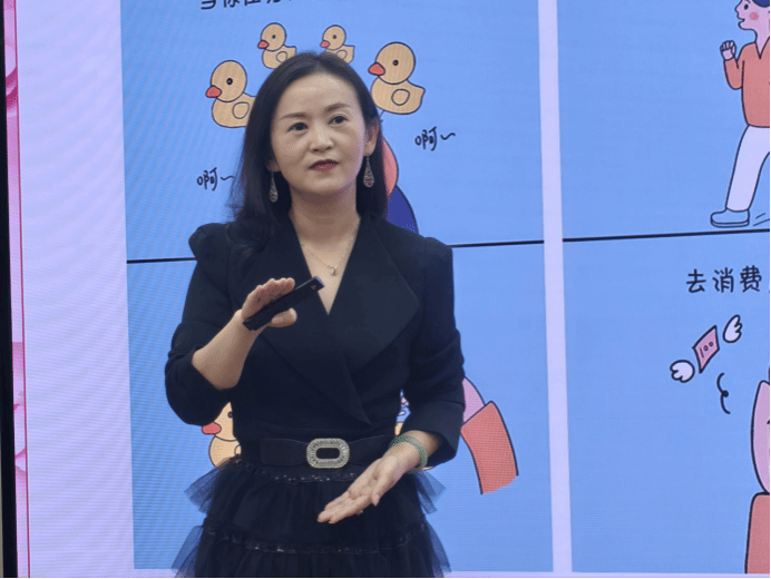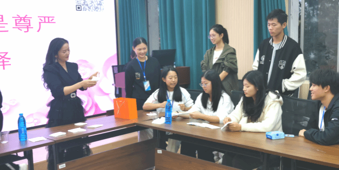 在活动中,贺芝分享了个人创业初衷,成长经历,以及创业理念,着重强调女性健康是幸福的基石。她通过女性健康的重要性,不仅仅关乎女性,也关乎社会各界。同时,她还精心组织了互动环节,选取多个品牌的女性用品做现场测试,与同学们积极互动,活跃了现场氛围。