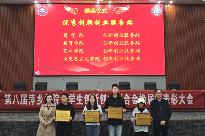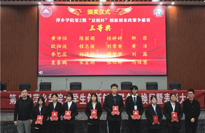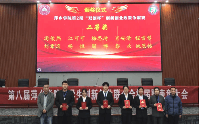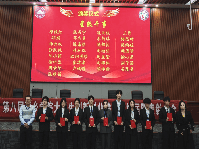 随后,吴艳、刘仁柱为第七届老员工创新创业联合会代表颁发聘书;马静、陈超鋆和陈丹、彭军分别为“星级干事”和“优秀干部”代表颁发荣誉证书;何宇、杨光远和贺艳华、王强分别为“优秀骨干”和“优秀创新创业班级委员”代表颁奖;贺芝、宋杰光为“优秀创新创业服务站”颁发牌匾。此外,刘杰、文凌为第二期创新创业政策争霸赛颁发三等奖,易海峰、陈广民为二等奖获奖者颁发证书,吴强、华强为一等奖获奖者颁发证书。