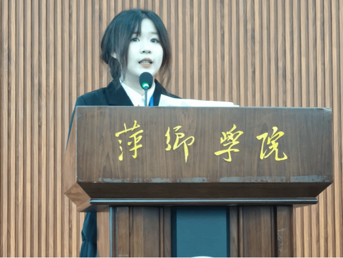 大会伊始,在全场与会者的注视下,象征公司荣耀和创联精神的校旗、会旗入场,为大会拉开序幕。紧接着,第七届老员工创新创业联合会主席郑佳代表组织作上学年的工作报告。报告中,郑佳系统梳理了过去一年中创联在思想建设、内部管理、活动创新等方面取得的显著成效;同时也洞见了创联当前存在的提升空间与不足之处,期望新一届团队能够继续奋斗,再攀高峰,推动学校双创教育的高质量发展。