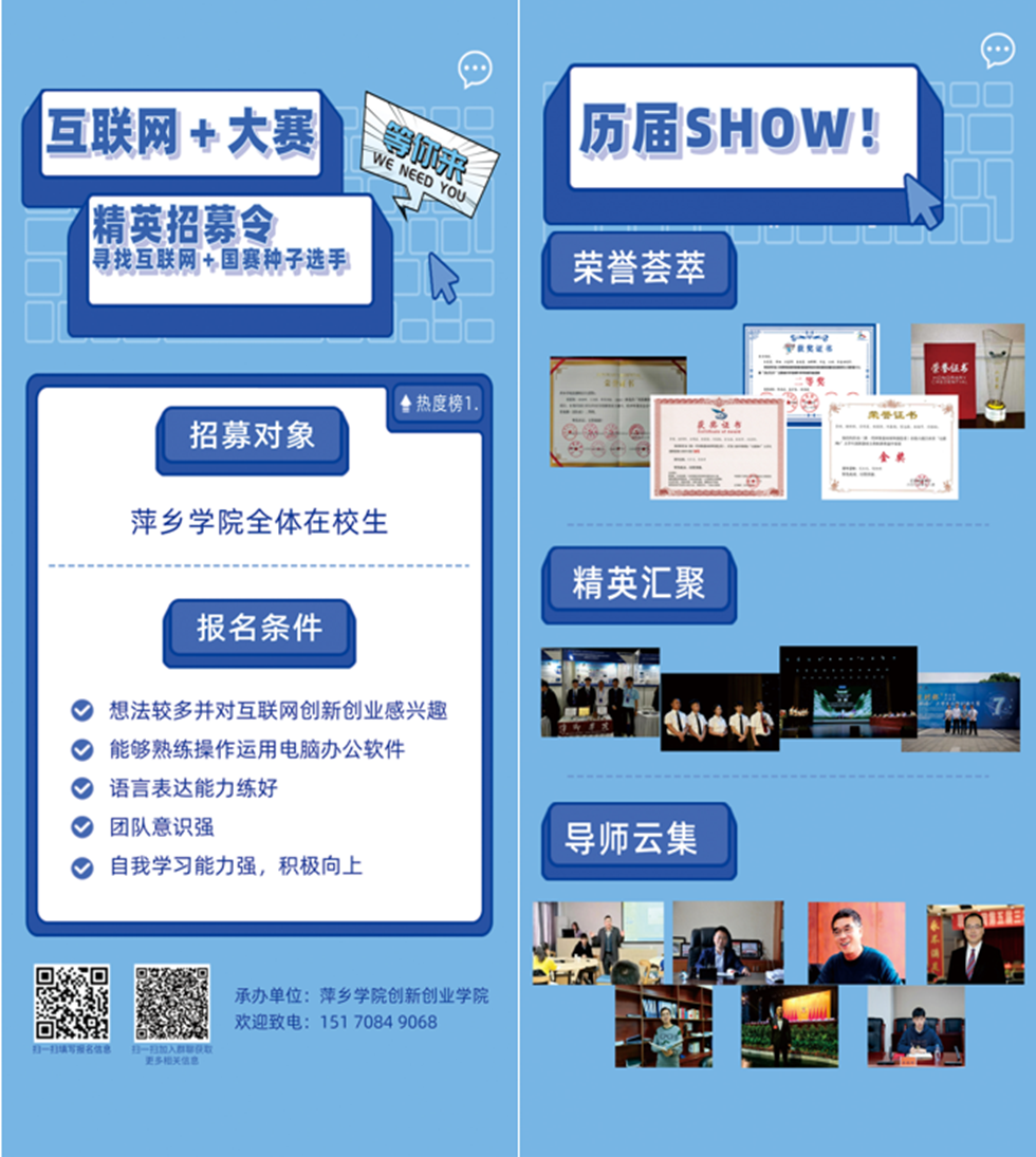 为继续做好高校创新创业工作,争取在今后中国国际“互联网+”老员工创新创业大赛中取得优异成绩,结合公司实际情况,现面向全校员工进行“互联网+”国赛种子选手的招募工作,愿有志于中国国际“互联网+”老员工创新创业大赛的同学们踊跃加入,进行选拔后,将邀请国家级创新创业导师对入选同学进行有针对性的培训,并积极组织参加高级别创新创业训练营活动,以达到提升员工创新创业素养和赛场应变能力的目的,以便推荐到国赛培育项目成为国赛选手,为公司争得荣誉。
