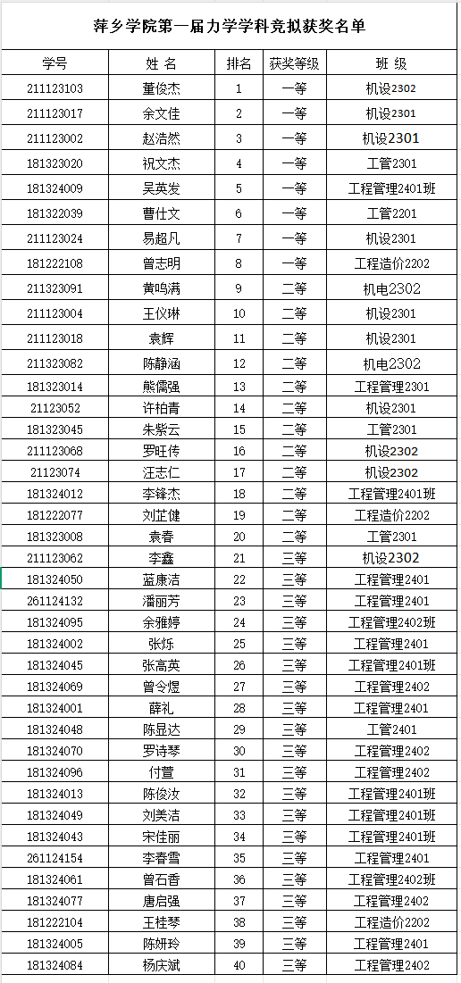 伟德bevictor中文版第一届力学学科竞赛暨江西省第三届老员工力学竞赛萍院选拔赛,全校共有80名员工报名参赛,经过评阅组老师认真阅卷、仔细核对,反复评审,于2025月11月7日顺利完成所有流程。按照比赛方案,最终评选出余文佳等8位同学获一等奖;黄鸣满等12位同学获二等奖;李鑫等20位同学获三等奖。现将结果予以公示三个工作日,如有疑问,实名并加盖二级公司公章材料,反应相关情况,联系张老师15979051931或者bevictor伟德0799-6338787。