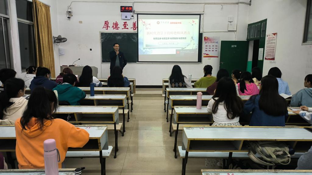 宋杰光以“新时代背景下的师德师风教育”为主题,从新时代下的师德师风、违反师德师风的具体表现、违反师德师风的典型案例、《新时代中小学教师职业行为十项准则》解读、做新时代“四有”好老师五个方面开展本次教育活动。