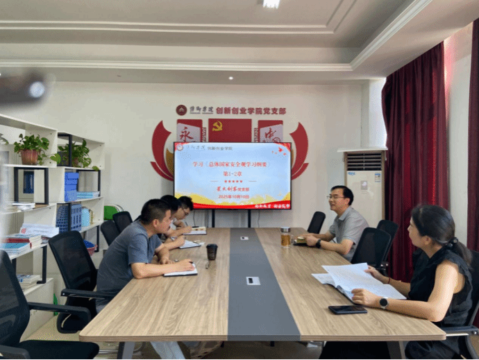 学习会上,宋杰光围绕《纲要》中 “统筹发展和安全”“维护科技安全”“保障意识形态安全” 等核心章节进行领学,结合当前高校创新创业工作实际,解读总体国家安全观在人才培养、科研创新、校企合作中的实践要求。随后,党员们结合自身工作分享学习体会:有党员提出要在创客项目指导中融入知识产权保护意识,维护科技安全;也有党员表示需加强员工创新创业中的意识形态引导,筑牢思想安全防线,现场研讨氛围浓厚,实现理论学习与实践工作的深度结合。