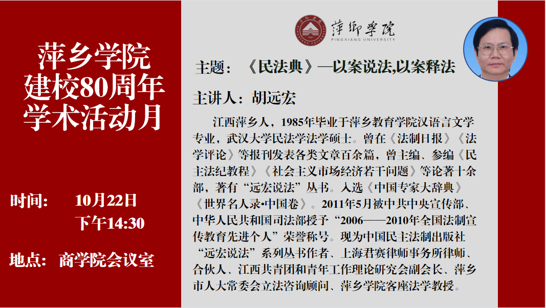 商公司校庆活动报告——胡远宏:《民法典》—以案说法,以案释法