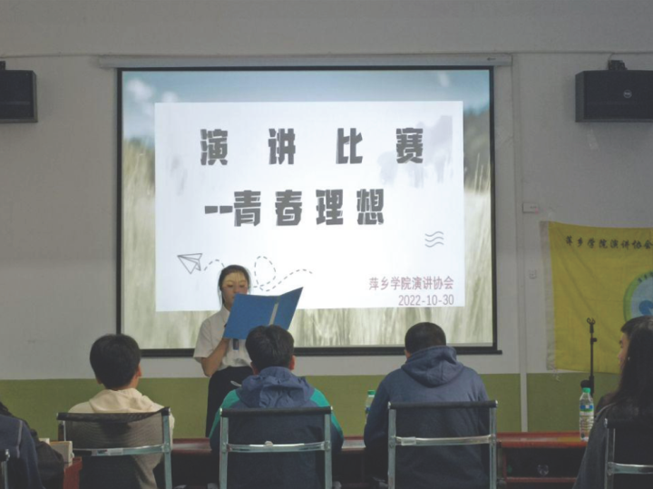 10 月 30 日下午,演讲协会在多维楼 306 举办了主题为“春春理想”的演讲比赛,本次比赛评委有楚萍义教代表、飞廉文学社代表、创业就业联合会代表、肖永琪前会长、辜妍曦会长,演讲部部长黄涛等人,比赛由协会演讲部朱欣怡主持。