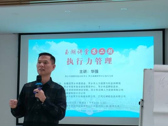 此次活动邀请了萍乡市品牌促进会秘书长、萍乡品牌研究中心执行主任华强作为主讲嘉宾。他以“执行力管理”为主题,并将它细分为五个小点——技术力、行动力、有效力、文化整合力、战略管理力。以这五个力作为切入点,对企业经营的找准客户群体、开通销售渠道、管理平台构建等方便提出了针对性的意见。