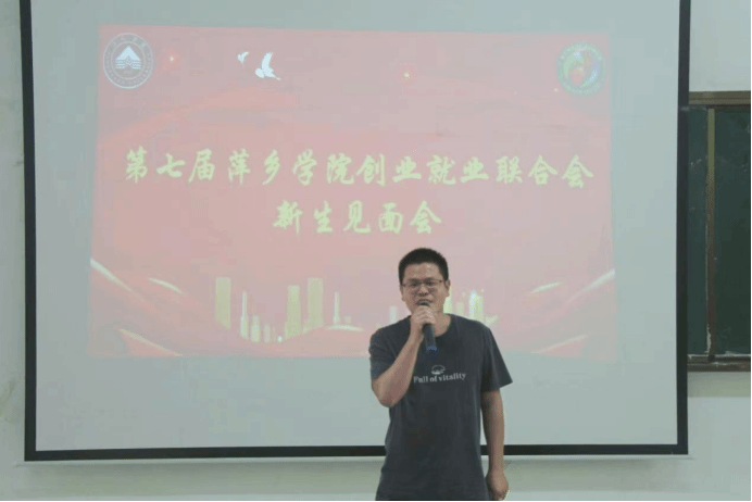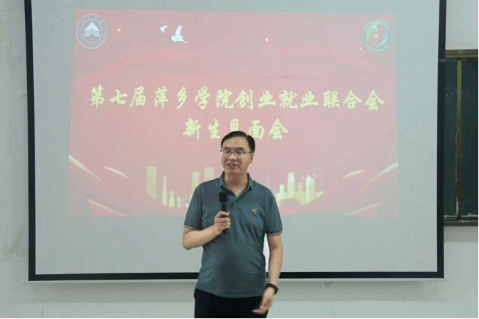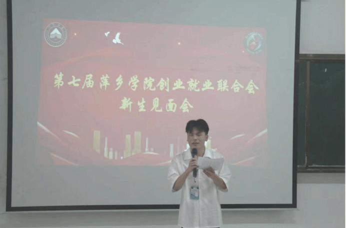 在表彰大会结束后,会议随即转入了新生见面会阶段。创业就业联合会主席张建辉代表创业就业联合会发表了欢迎词。他向新成员表达了祝贺,并提醒大家在融入老员工活的同时,应妥善规划个人时间,明确自己的责任与目标,避免浪费宝贵光阴。同时,他鼓励新成员充分利用创业就业联合会提供的资源,积极参与各类实践活动。