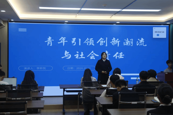 在比赛中,选手们青春活力四射,演讲中穿插的掌声与激情的言辞相得益彰。每位选手的演讲都深刻地揭示了从古至今,乃至神话传说中,创新文化与青少年承担社会责任的紧密联系。这些演讲不仅展现了历史的深度,也体现了时代的精神,让听众感受到了创新的力量和青年一代的社会责任感。
