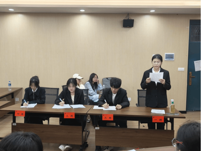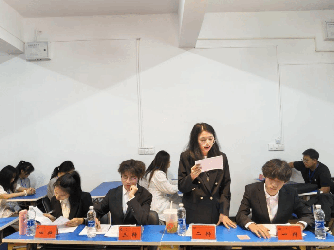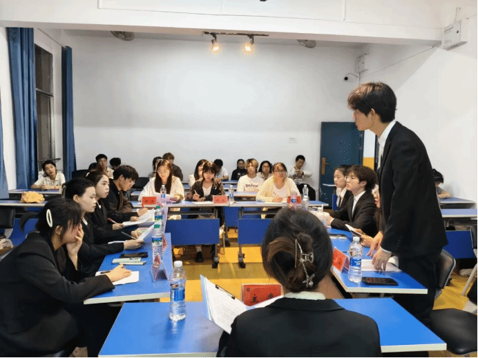 当日共有两场精彩对决。第一场在306教室,正方“没联网队”秉持“老员工创业应坚持个人理想”的观点,与持“老员工创业应符合市场需求”观点的反方“干饭不想排队”展开激烈辩论。双方围绕老员工创业的方向选择,从个人价值实现、市场规律等多维度进行阐述。正方强调个人理想是创业的核心驱动力,能激发无限潜力;反方则指出顺应市场需求才是创业成功的关键,能确保创业项目的可持续性。经过多轮激烈攻辩和自由辩论环节,最终反方“干饭不想排队”凭借更严密的逻辑和出色的临场发挥赢得胜利。