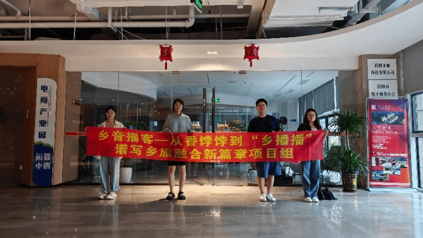 4月19日,大创项目《乡音播客——从乡播播到香饽饽,谱写乡旅融合新篇章》团队前往衡阳市蒸湘区多牛世界·衡阳高新电商产业园进行实地调研。本次调研由项目指导老师苏欣蕾指导,项目负责人罗菲及其他三位成员一同前往。项目组深入湖南衡阳,实地调研当地农村电商发展情况,探索电商与乡村振兴的融合路径。