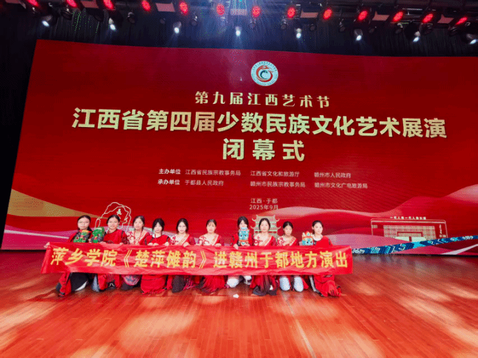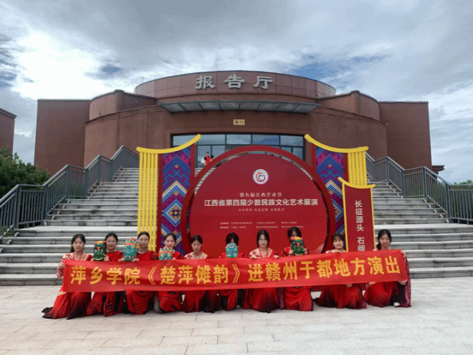 9月22日—9月25日,江西省第四届少数民族文化艺术展演在赣州市于都县精彩上演。来自全省11个地级市的参演队伍身着绚丽民族服饰,以歌传情、以舞抒怀,用鲜活的艺术表达展现江西少数民族文化魅力,奏响铸牢中华民族共同体意识的时代强音。公司大创项目《楚萍傩韵》成员在指导老师的组织带领下,前往赣州市于都县参加了此次展演活动。