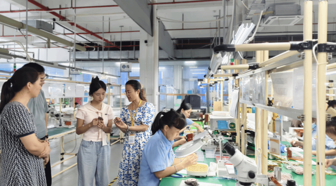 活动中,在贺艳华的引导下,项目团队进入车间,实地了解铜线圈生产流程,从原料投入到成品产出,每一个环节都仔细观察、询问。随后,团队来到实验室,详细了解了铜线圈相关实验设备的功能与实验开展情况,包括性能检测、质量把控等方面的实验操作与原理。