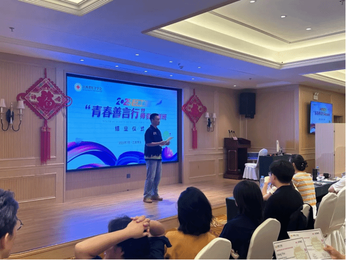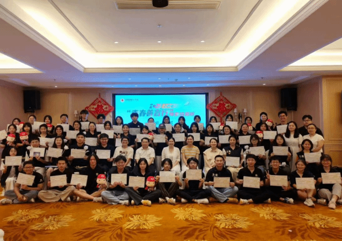7月19日,江西省第5期 “青春善言行” 团队培训班在萍乡圆满收官。本次培训由中国红十字会总会、红十字会与红新月会国际联合会全程指导,江西省红十字会主办,萍乡市红十字会具体承办,来自全省25所高校的44名红十字青年志愿者参与其中。公司老员工创新创业训练计划项目《YABC 同伴教育赋能萍乡高校志愿服务质量提升计划》团队员工曾维仪、郭倩、李皓作为学员,指导老师李鸣作为培训团队(教练)参与本次培训。经过7天的培训,曾维仪、郭倩、李皓分别获得同伴教育者资格证。
