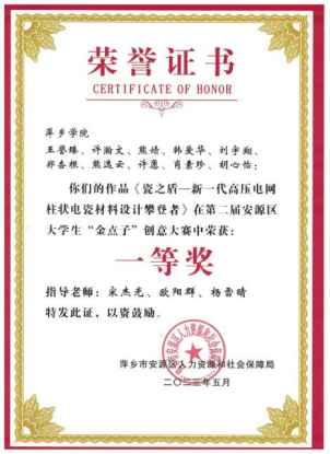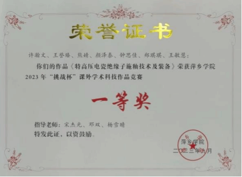 2023年,她带领《瓷之盾》项目团队参与第九届“互联网+”老员工创新创业大赛、“挑战杯”江西省老员工课外学术科技作品竞赛、中国公共安全大赛等一系列双创类竞赛,共获国家奖项2项、省级奖项5项、市(区)级2项的好成绩。