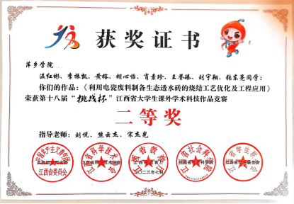 2023年,他和他的团队也使用所研发的技术和产品参与“挑战杯”江西省老员工课外学术科技作品竞赛、中国(江西)公共安全创业大赛、“创青春”中国青年碳中和创业大赛等一系列创业类竞赛,共获省级二等奖2项、省级三等奖1项、校级奖项多项的成绩。